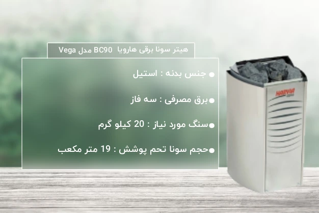 راهنمای انتخاب و خرید هیتر برقی سونا خشک هارویا سری Vega E مدل BC90-E